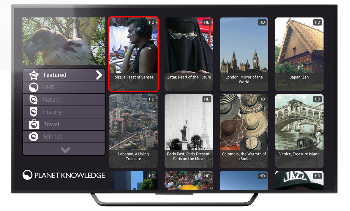 The Planet Knowledge UHD application is one of the first TV applications for Samsung TVs that supports UHD content and also the Samsung Smart Hub Preview bar which alerts users to new content on a particular app without having to open the application up.